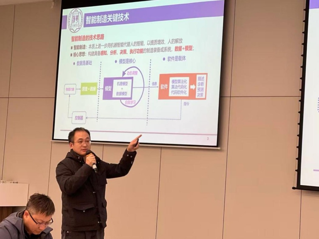 在随后的座谈会上,尹磊总经理首先对实验室教师代表的到访表示诚挚欢迎,并系统介绍了企业的发展历程、产业布局与中长期战略规划。张晨辉教授详细阐述了实验室的科研方向、团队优势与代表性研究成果,何永勇研究员、王健健副教授分别以《超滑传动系统设计原理与技术》、《智能制造产线关键技术》为题作报告,分享了相关领域的前沿进展与技术突破。侯颖副区长、杨凤辉副主席、董浩主任先后介绍了顺义区产业发展规划与科技创新支持政策,表达了与实验室开展深度合作、积极引入高端智力资源的意愿。双方围绕技术联合攻关、成果转化落地、人才联合培养等潜在合作方向进行了深入探讨,初步达成多项合作共识。